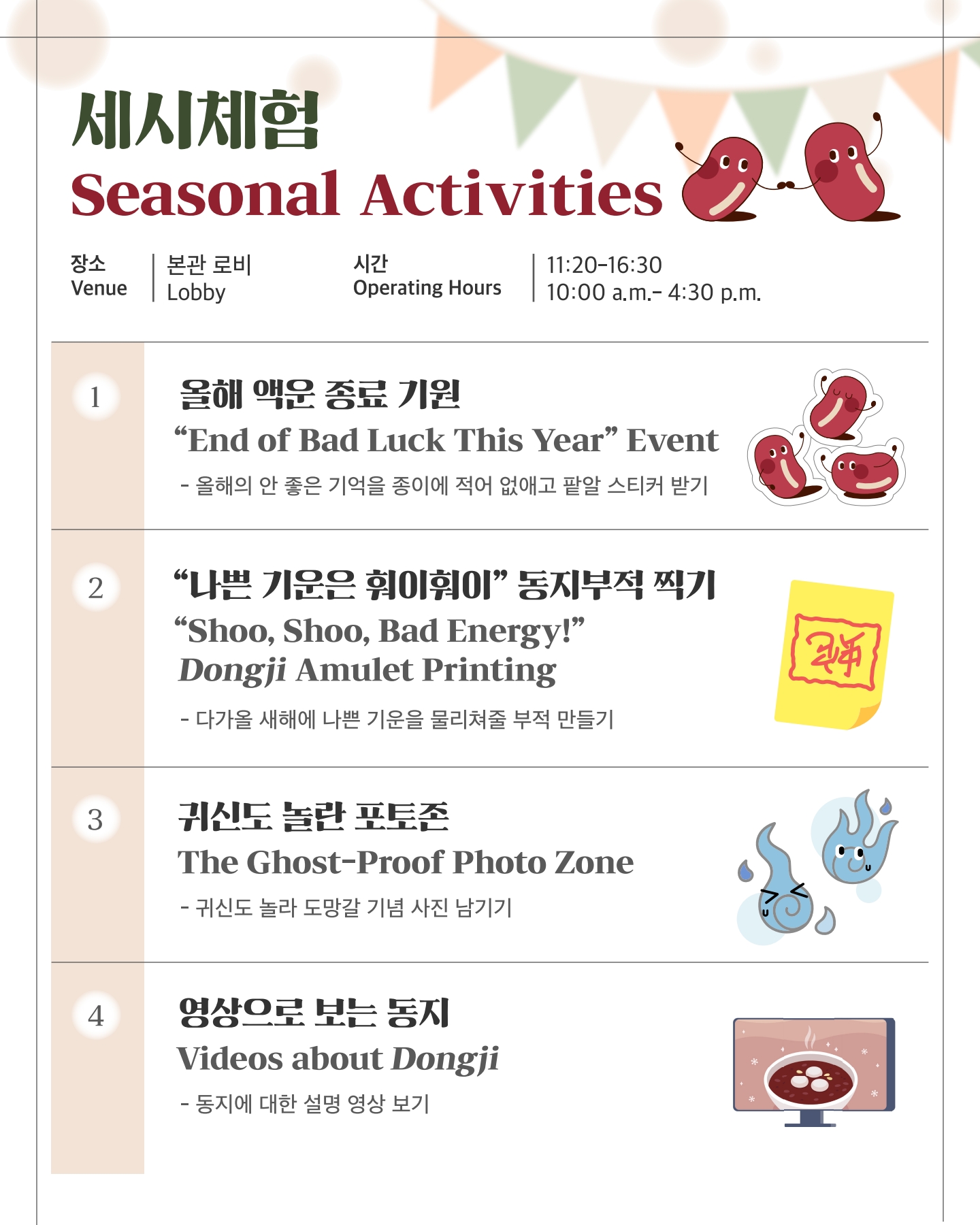 ‘안녕 2025년! 동지팥티’는 국립민속박물관이 동지를 맞아 진행하는 연말 세시풍속 체험형 문화행사입니다.